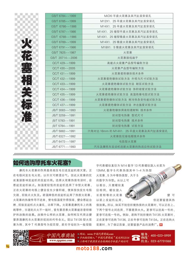 內46 火花塞相關標準/如何選購摩托車火花塞