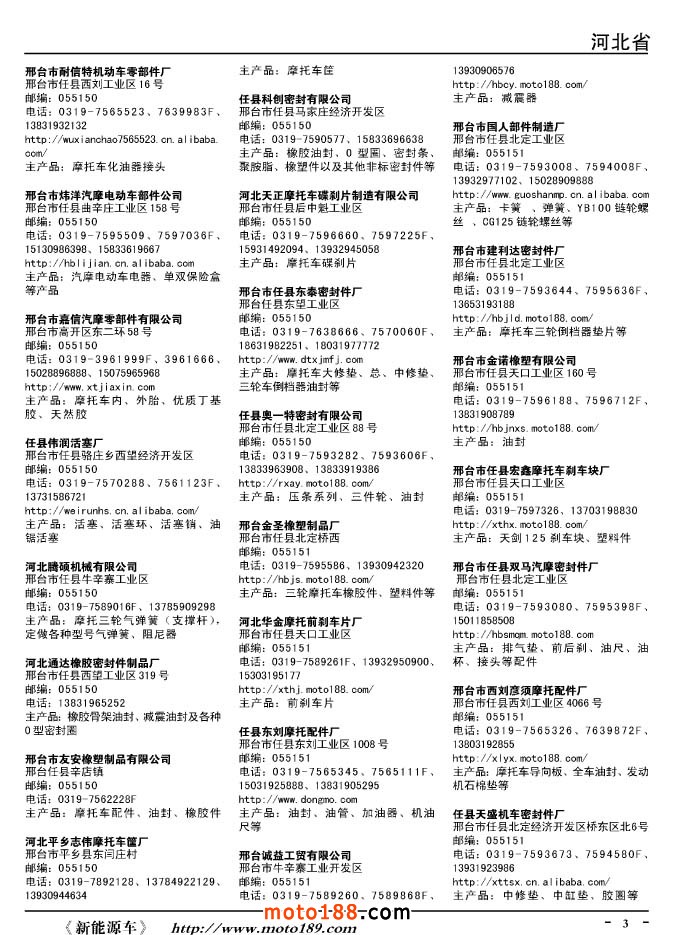 這兩年行業(yè)調(diào)整力度非常大,為了確保我們提供的信息準(zhǔn)確性,我們本著寧缺毋濫的原則,不去圖虛的數(shù)量。目前摩托車與配件行業(yè)的不少經(jīng)銷商是跨行業(yè)經(jīng)營的,所以我們在本書中增加了部分摩托車整車廠、電動車生產(chǎn)廠、機(jī)動三輪車制造廠。所選的這些企業(yè)都是這個行業(yè)具有影響力的品牌企業(yè),是為了大家在使用這本書時,獲取相關(guān)的延伸產(chǎn)業(yè)更多的實(shí)用信息。