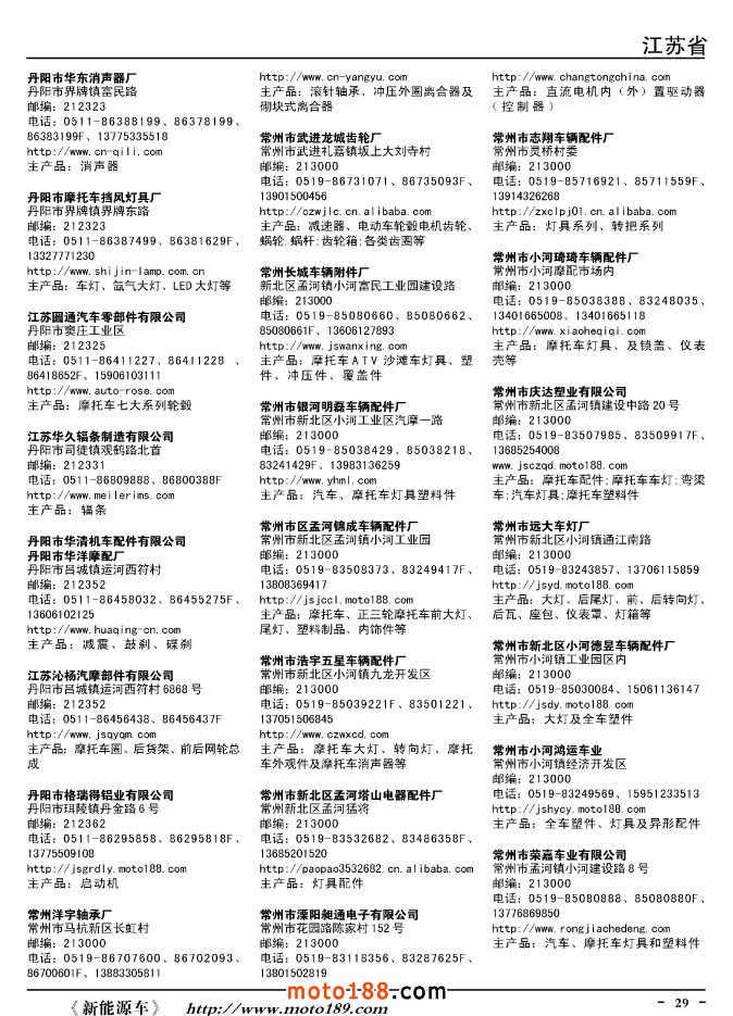 這兩年行業(yè)調(diào)整力度非常大,為了確保我們提供的信息準(zhǔn)確性,我們本著寧缺毋濫的原則,不去圖虛的數(shù)量。目前摩托車與配件行業(yè)的不少經(jīng)銷商是跨行業(yè)經(jīng)營(yíng)的,所以我們?cè)诒緯性黾恿瞬糠帜ν熊囌噺S、電動(dòng)車生產(chǎn)廠、機(jī)動(dòng)三輪車制造廠。所選的這些企業(yè)都是這個(gè)行業(yè)具有影響力的品牌企業(yè),是為了大家在使用這本書時(shí),獲取相關(guān)的延伸產(chǎn)業(yè)更多的實(shí)用信息。