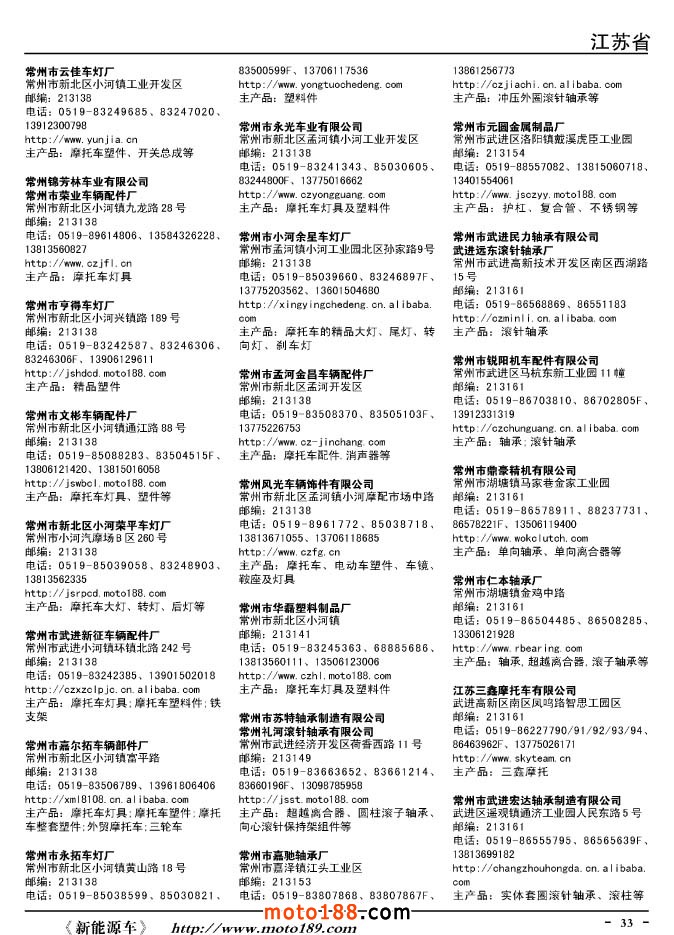 這兩年行業調整力度非常大,為了確保我們提供的信息準確性,我們本著寧缺毋濫的原則,不去圖虛的數量。目前摩托車與配件行業的不少經銷商是跨行業經營的,所以我們在本書中增加了部分摩托車整車廠、電動車生產廠、機動三輪車制造廠。所選的這些企業都是這個行業具有影響力的品牌企業,是為了大家在使用這本書時,獲取相關的延伸產業更多的實用信息。