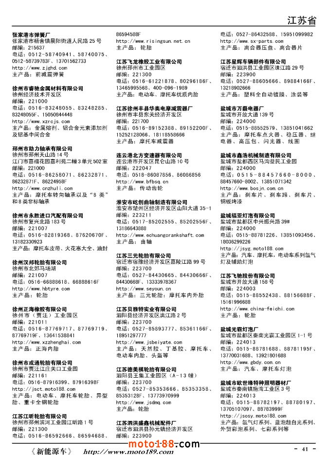 這兩年行業調整力度非常大,為了確保我們提供的信息準確性,我們本著寧缺毋濫的原則,不去圖虛的數量。目前摩托車與配件行業的不少經銷商是跨行業經營的,所以我們在本書中增加了部分摩托車整車廠、電動車生產廠、機動三輪車制造廠。所選的這些企業都是這個行業具有影響力的品牌企業,是為了大家在使用這本書時,獲取相關的延伸產業更多的實用信息。