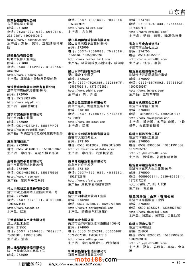這兩年行業調整力度非常大,為了確保我們提供的信息準確性,我們本著寧缺毋濫的原則,不去圖虛的數量。目前摩托車與配件行業的不少經銷商是跨行業經營的,所以我們在本書中增加了部分摩托車整車廠、電動車生產廠、機動三輪車制造廠。所選的這些企業都是這個行業具有影響力的品牌企業,是為了大家在使用這本書時,獲取相關的延伸產業更多的實用信息。