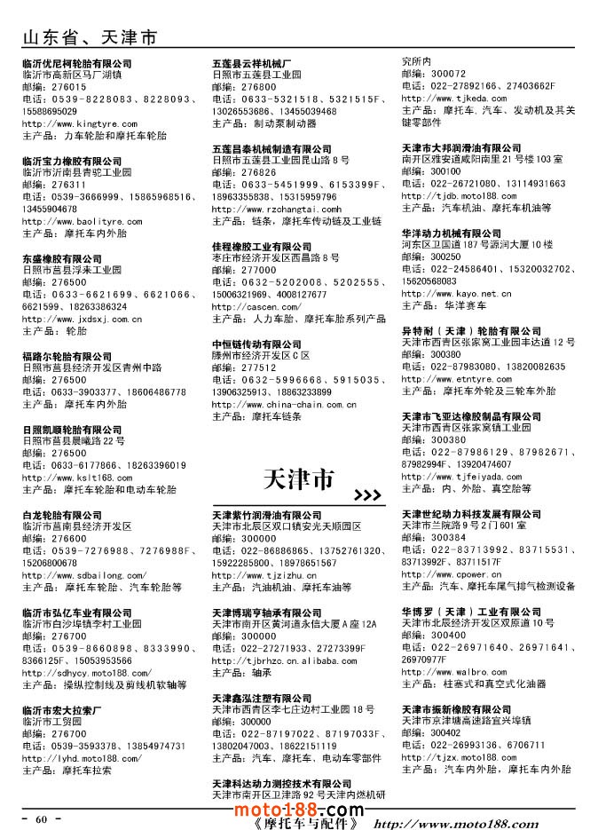 這兩年行業調整力度非常大,為了確保我們提供的信息準確性,我們本著寧缺毋濫的原則,不去圖虛的數量。目前摩托車與配件行業的不少經銷商是跨行業經營的,所以我們在本書中增加了部分摩托車整車廠、電動車生產廠、機動三輪車制造廠。所選的這些企業都是這個行業具有影響力的品牌企業,是為了大家在使用這本書時,獲取相關的延伸產業更多的實用信息。