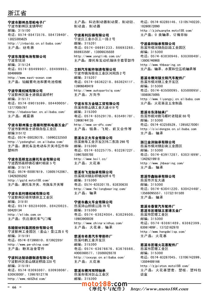 這兩年行業(yè)調(diào)整力度非常大,為了確保我們提供的信息準確性,我們本著寧缺毋濫的原則,不去圖虛的數(shù)量。目前摩托車與配件行業(yè)的不少經(jīng)銷商是跨行業(yè)經(jīng)營的,所以我們在本書中增加了部分摩托車整車廠、電動車生產(chǎn)廠、機動三輪車制造廠。所選的這些企業(yè)都是這個行業(yè)具有影響力的品牌企業(yè),是為了大家在使用這本書時,獲取相關(guān)的延伸產(chǎn)業(yè)更多的實用信息。