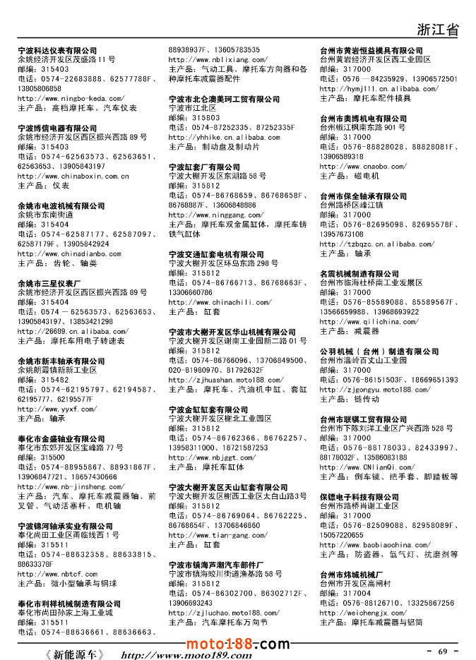 2015年升級(jí)版摩托車配件生產(chǎn)企業(yè)大全對(duì)13版進(jìn)行了大力度的調(diào)整:刪除了2013年之前銷聲匿跡的單位,盡管有的電話是可以打通的,比如浙江和河北刪除的單位比較多。本次版本里的所有單位都是有具體出處和來(lái)歷的,而且是這兩年來(lái)經(jīng)營(yíng)比較活躍的單位。