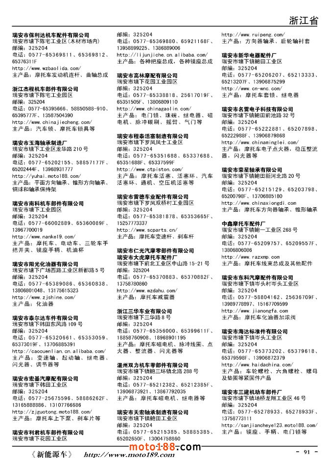 這兩年行業調整力度非常大,為了確保我們提供的信息準確性,我們本著寧缺毋濫的原則,不去圖虛的數量。目前摩托車與配件行業的不少經銷商是跨行業經營的,所以我們在本書中增加了部分摩托車整車廠、電動車生產廠、機動三輪車制造廠。所選的這些企業都是這個行業具有影響力的品牌企業,是為了大家在使用這本書時,獲取相關的延伸產業更多的實用信息。