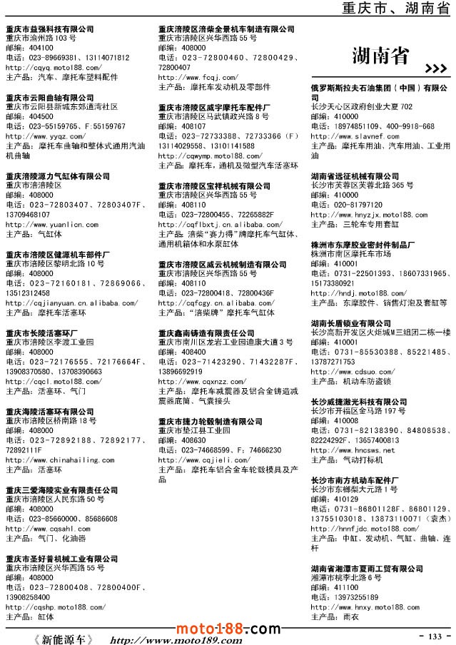 這兩年行業調整力度非常大,為了確保我們提供的信息準確性,我們本著寧缺毋濫的原則,不去圖虛的數量。目前摩托車與配件行業的不少經銷商是跨行業經營的,所以我們在本書中增加了部分摩托車整車廠、電動車生產廠、機動三輪車制造廠。所選的這些企業都是這個行業具有影響力的品牌企業,是為了大家在使用這本書時,獲取相關的延伸產業更多的實用信息。