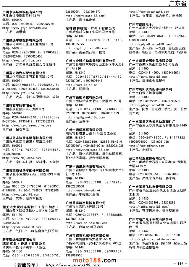 這兩年行業(yè)調(diào)整力度非常大,為了確保我們提供的信息準(zhǔn)確性,我們本著寧缺毋濫的原則,不去圖虛的數(shù)量。目前摩托車與配件行業(yè)的不少經(jīng)銷商是跨行業(yè)經(jīng)營的,所以我們?cè)诒緯性黾恿瞬糠帜ν熊囌噺S、電動(dòng)車生產(chǎn)廠、機(jī)動(dòng)三輪車制造廠。所選的這些企業(yè)都是這個(gè)行業(yè)具有影響力的品牌企業(yè),是為了大家在使用這本書時(shí),獲取相關(guān)的延伸產(chǎn)業(yè)更多的實(shí)用信息。