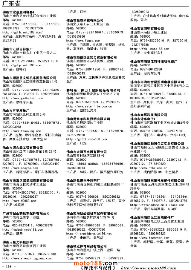 這兩年行業(yè)調(diào)整力度非常大,為了確保我們提供的信息準(zhǔn)確性,我們本著寧缺毋濫的原則,不去圖虛的數(shù)量。目前摩托車與配件行業(yè)的不少經(jīng)銷商是跨行業(yè)經(jīng)營的,所以我們?cè)诒緯性黾恿瞬糠帜ν熊囌噺S、電動(dòng)車生產(chǎn)廠、機(jī)動(dòng)三輪車制造廠。所選的這些企業(yè)都是這個(gè)行業(yè)具有影響力的品牌企業(yè),是為了大家在使用這本書時(shí),獲取相關(guān)的延伸產(chǎn)業(yè)更多的實(shí)用信息。