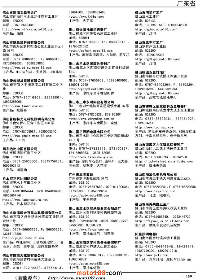 這兩年行業調整力度非常大,為了確保我們提供的信息準確性,我們本著寧缺毋濫的原則,不去圖虛的數量。目前摩托車與配件行業的不少經銷商是跨行業經營的,所以我們在本書中增加了部分摩托車整車廠、電動車生產廠、機動三輪車制造廠。所選的這些企業都是這個行業具有影響力的品牌企業,是為了大家在使用這本書時,獲取相關的延伸產業更多的實用信息。