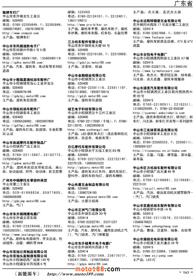 這兩年行業(yè)調(diào)整力度非常大,為了確保我們提供的信息準(zhǔn)確性,我們本著寧缺毋濫的原則,不去圖虛的數(shù)量。目前摩托車與配件行業(yè)的不少經(jīng)銷商是跨行業(yè)經(jīng)營的,所以我們在本書中增加了部分摩托車整車廠、電動車生產(chǎn)廠、機動三輪車制造廠。所選的這些企業(yè)都是這個行業(yè)具有影響力的品牌企業(yè),是為了大家在使用這本書時,獲取相關(guān)的延伸產(chǎn)業(yè)更多的實用信息。