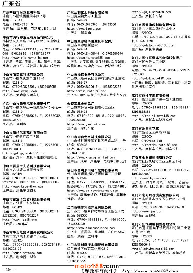 這兩年行業(yè)調(diào)整力度非常大,為了確保我們提供的信息準(zhǔn)確性,我們本著寧缺毋濫的原則,不去圖虛的數(shù)量。目前摩托車與配件行業(yè)的不少經(jīng)銷商是跨行業(yè)經(jīng)營(yíng)的,所以我們?cè)诒緯性黾恿瞬糠帜ν熊囌噺S、電動(dòng)車生產(chǎn)廠、機(jī)動(dòng)三輪車制造廠。所選的這些企業(yè)都是這個(gè)行業(yè)具有影響力的品牌企業(yè),是為了大家在使用這本書時(shí),獲取相關(guān)的延伸產(chǎn)業(yè)更多的實(shí)用信息。
