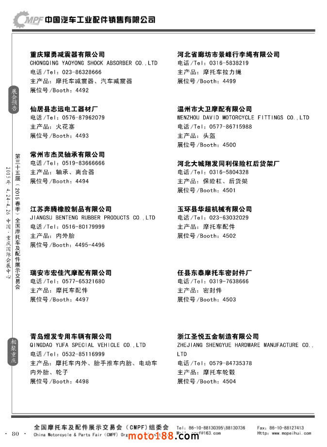 ”全國摩托車及配件展示會“(CMPF)是中國摩托車行業的傳統盛會,自1981年至今已成功舉辦了67季次(每年春、秋季各舉辦一次),現已發展成為行業內規模最大、專業觀眾最多、影響最廣泛、參展商最有收獲的全國性品牌展會。CMPF展會聚集了全國大部分摩托車配件生產企業與流通企業,是產需雙方進行貿易洽談、新產品技術推廣與交流的理想服務平臺。
