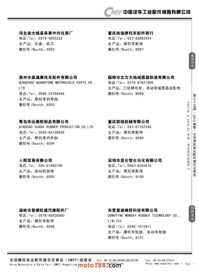 ”全國摩托車及配件展示會“(CMPF)是中國摩托車行業的傳統盛會,自1981年至今已成功舉辦了67季次(每年春、秋季各舉辦一次),現已發展成為行業內規模最大、專業觀眾最多、影響最廣泛、參展商最有收獲的全國性品牌展會。CMPF展會聚集了全國大部分摩托車配件生產企業與流通企業,是產需雙方進行貿易洽談、新產品技術推廣與交流的理想服務平臺。