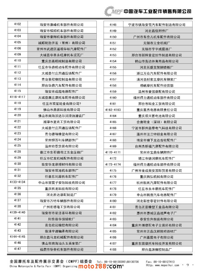 ”全國摩托車及配件展示會“(CMPF)是中國摩托車行業的傳統盛會,自1981年至今已成功舉辦了67季次(每年春、秋季各舉辦一次),現已發展成為行業內規模最大、專業觀眾最多、影響最廣泛、參展商最有收獲的全國性品牌展會。CMPF展會聚集了全國大部分摩托車配件生產企業與流通企業,是產需雙方進行貿易洽談、新產品技術推廣與交流的理想服務平臺。