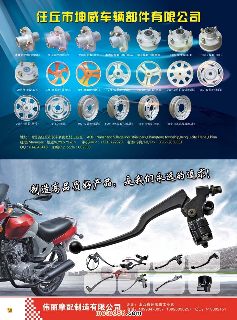 年每月一期,月刊。目前摩托車配件行業雖然只剩我們一家雜志,行業形勢也每況愈下,但我們的印量、發行、價格等均保持不變。根據行業、市場的變化,在明年將增加對三輪車行業及電動車配件行業的信息發布。