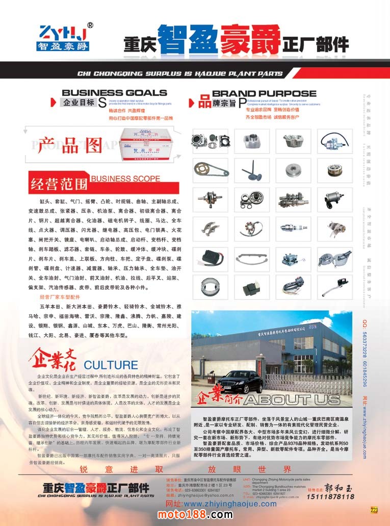 年每月一期,月刊。目前摩托車配件行業(yè)雖然只剩我們一家雜志,行業(yè)形勢(shì)也每況愈下,但我們的印量、發(fā)行、價(jià)格等均保持不變。根據(jù)行業(yè)、市場(chǎng)的變化,在明年將增加對(duì)三輪車行業(yè)及電動(dòng)車配件行業(yè)的信息發(fā)布。