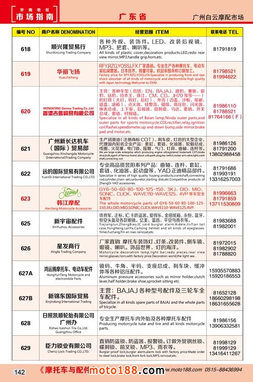 各摩配市場(chǎng)詳細(xì)資料請(qǐng)注冊(cè)我們的VIP會(huì)員咨詢 電話:0515-88436994 QQ:309362965、842467029、1051652573