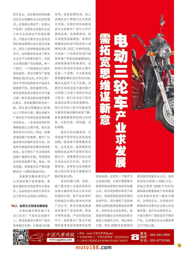 天氣在漸漸變冷,時(shí)令將進(jìn)入冬季,對(duì)于南方市場(chǎng)來(lái)說(shuō),將迎來(lái)元旦、春節(jié)的節(jié)日市場(chǎng),并達(dá)到新年銷(xiāo)售的高潮;對(duì)于北方市場(chǎng)來(lái)說(shuō),冬季則將步入淡季。對(duì)我們雜志社來(lái)說(shuō),冬季也將了收官階段,開(kāi)始規(guī)劃新一年的工作,凡事預(yù)則立,不預(yù)則廢。為了明年更好的開(kāi)展工作,我們雜志社規(guī)劃在2015年的工作分三條線(xiàn)開(kāi)展:一是為了2015年的春季重慶全國(guó)摩托車(chē)及配件展示交易會(huì)的召開(kāi)編寫(xiě)新版的《西南(川渝)市場(chǎng)指南》,明年上半年的配件行業(yè)的工作重點(diǎn)放置在西南地區(qū);春季重慶全摩會(huì)也涉及新能源行業(yè),我們雜志也將為這一專(zhuān)題做好相應(yīng)的工作。二是在2014年我們雜志社參與了很多的在電動(dòng)車(chē)、三輪車(chē)行業(yè)的會(huì)議,頻率大概是每月參加4次會(huì)議,同時(shí)增加了重點(diǎn)市場(chǎng)的投放,但是工作進(jìn)展卻不盡人意,在明年的工作中我們將會(huì)增加這一塊的投入,加大工作力度;同時(shí)把這個(gè)行業(yè)大數(shù)據(jù)進(jìn)行整理匯總,初步統(tǒng)計(jì)有5~7萬(wàn)家的資料需要核對(duì),由于工作量巨大,此項(xiàng)工作目前已經(jīng)開(kāi)始進(jìn)行。三是我們今年新出刊的《新能源車(chē)》雜志,明年將以月刊的形式出刊,同時(shí)在全國(guó)有新能源汽車(chē)的市場(chǎng)做到全覆蓋,除了做到最好之外,把同行甩得更遠(yuǎn)。