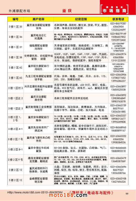 內(nèi)99 重慶外灘摩配市場(chǎng)經(jīng)銷商名錄