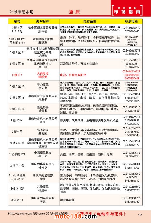 內(nèi)101 重慶外灘摩配市場(chǎng)經(jīng)銷商名錄