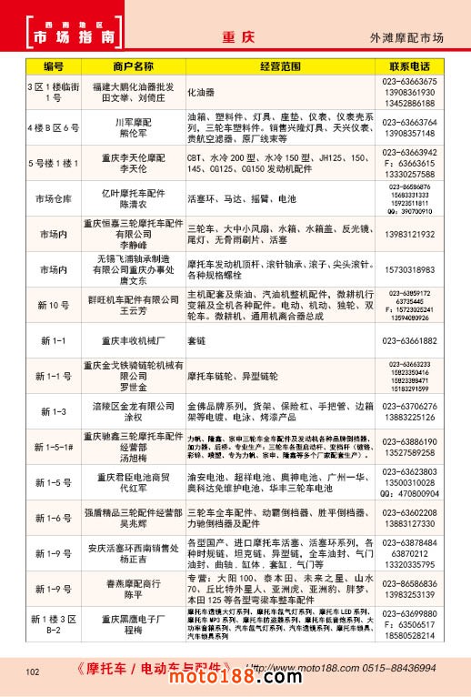 內102 重慶外灘摩配市場經銷商名錄