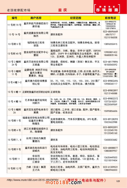 內109 高新區(qū)老頂坡摩配市場經銷商名錄