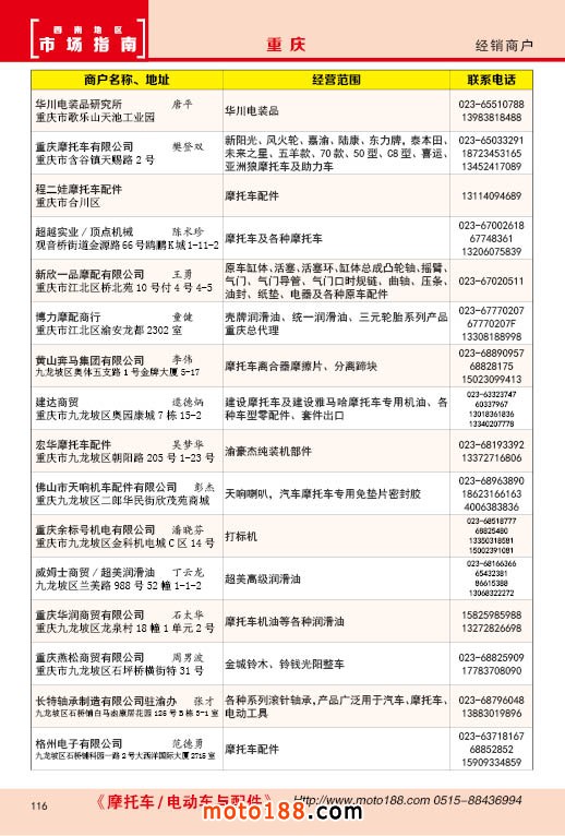 內116 重慶市摩托車配件經銷商戶