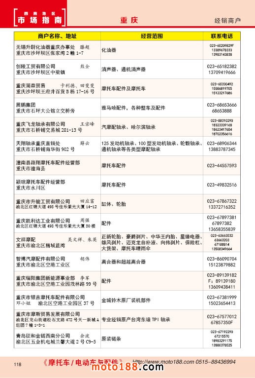 內118 重慶市摩托車配件經銷商戶