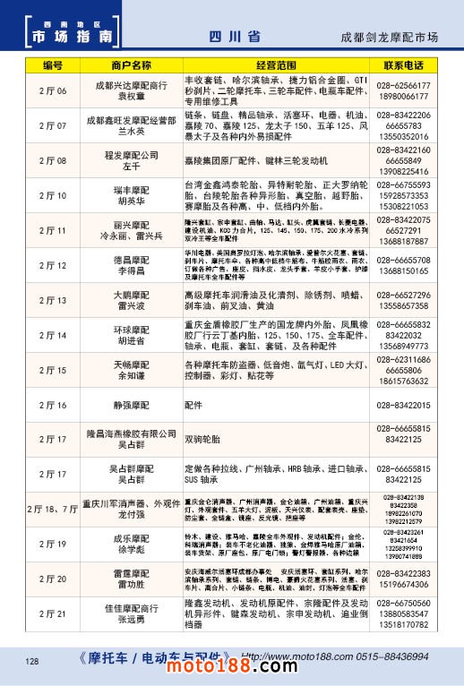 內(nèi)128 成都劍龍摩配市場經(jīng)銷商名錄