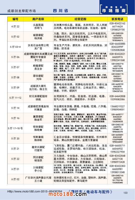 內(nèi)133 成都劍龍摩配市場(chǎng)經(jīng)銷商名錄