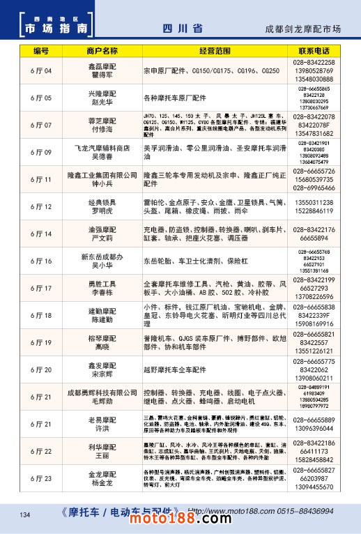 內(nèi)134 成都劍龍摩配市場經(jīng)銷商名錄