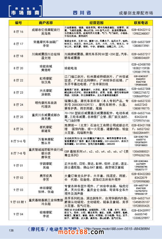 內(nèi)138 成都劍龍摩配市場經(jīng)銷商名錄