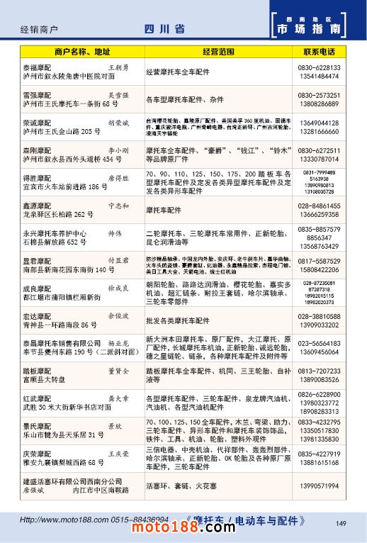 內149 四川省摩托車配件經銷商戶