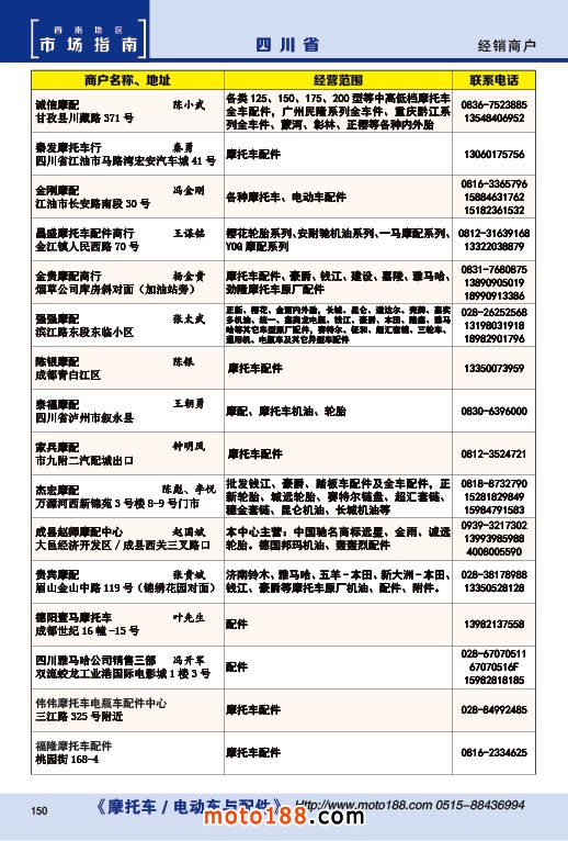 內(nèi)150 四川省摩托車(chē)配件經(jīng)銷(xiāo)商戶
