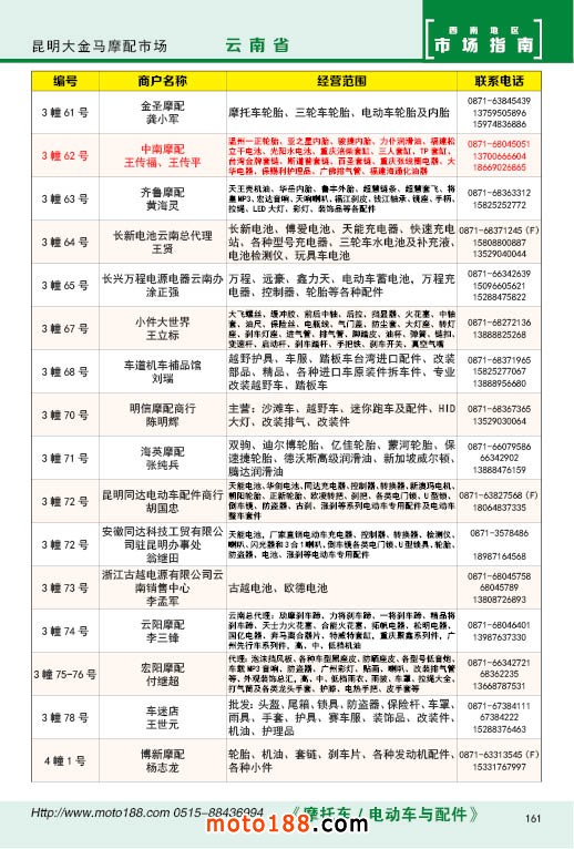 內(nèi)161 昆明市大金馬摩配市場經(jīng)銷商名錄