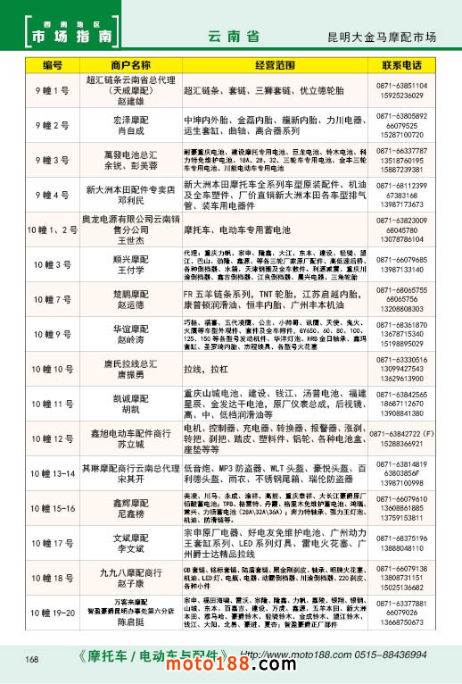 內(nèi)168 昆明市大金馬摩配市場經(jīng)銷商名錄