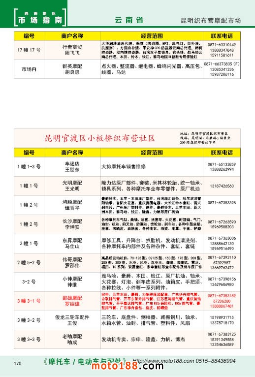 內170 昆明官渡區小板橋織布營市場經銷商名錄