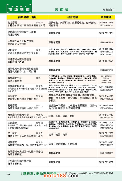 內(nèi)178 云南省摩托車配件經(jīng)銷商戶