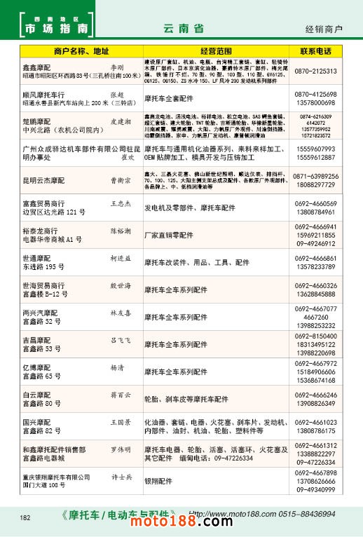 內(nèi)182 云南省摩托車配件經(jīng)銷商戶
