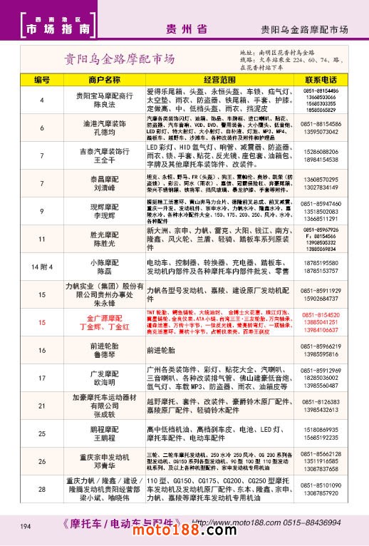 內194 貴陽烏金路摩配市場經銷商名錄