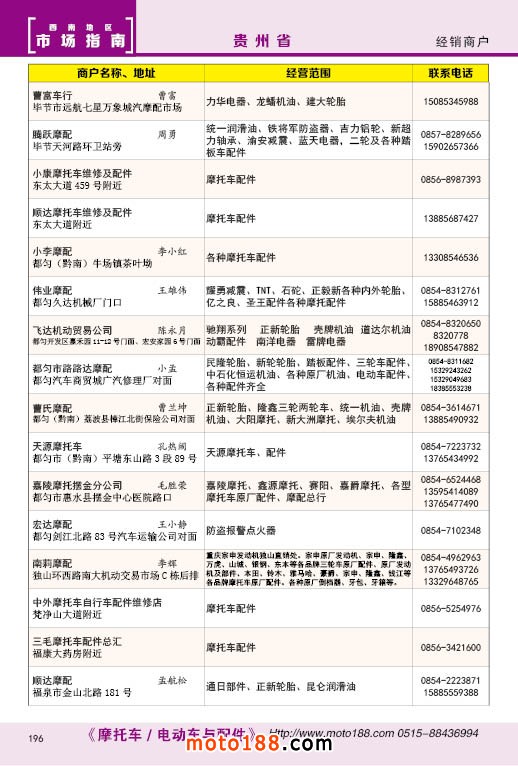 內(nèi)196 貴州省摩托車配件經(jīng)銷商戶