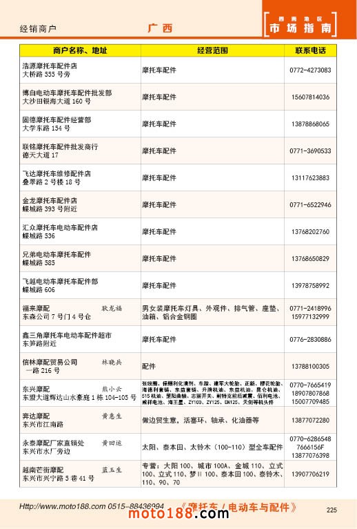 內(nèi)225 廣西摩托車配件經(jīng)銷商戶