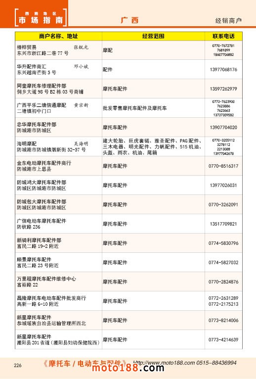 內(nèi)226 廣西摩托車配件經(jīng)銷商戶