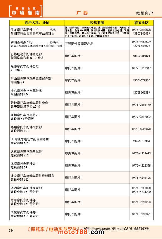 內234 廣西摩托車配件經銷商戶