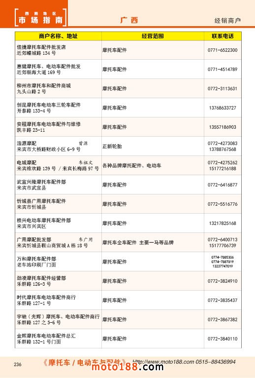 內236 廣西摩托車配件經銷商戶