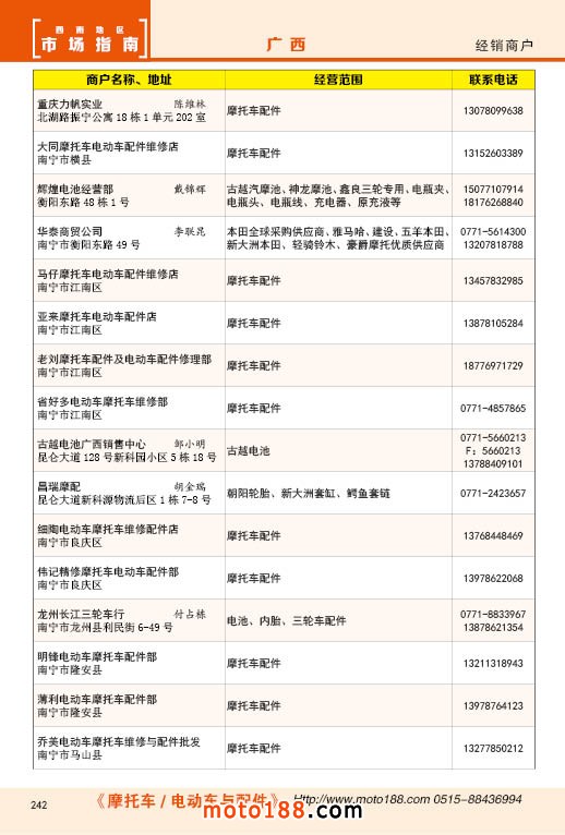 內242 廣西摩托車配件經銷商戶