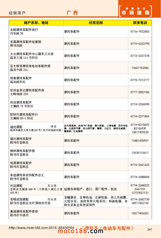 內247 廣西摩托車配件經銷商戶