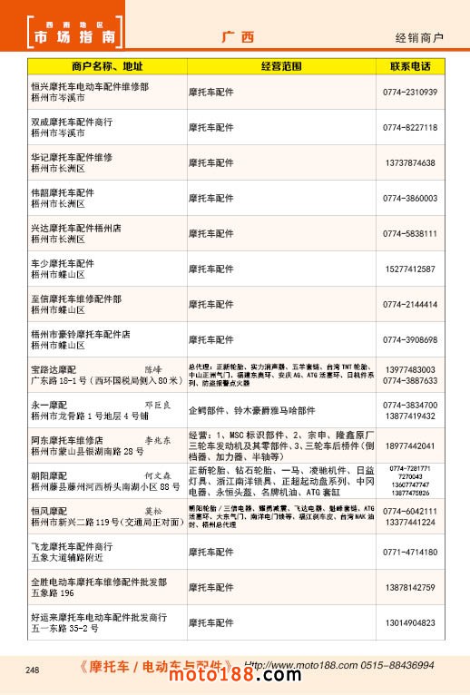 內248 廣西摩托車配件經銷商戶
