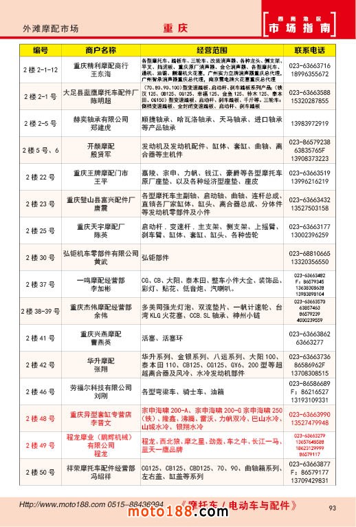 內93 重慶外灘摩配市場經銷商名錄